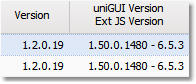 No exemplo acima a versão da aplicação do Node é 1.2.0.19, foi compilada com a versão do uniGUI 1.50.0.1480 e a versão do Ext JS usada é 6.5.3. (A versão da aplicação do Node é irrelevante para este tópico.)