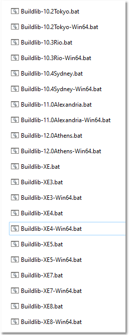 Esses arquivos batch podem gerar arquivos de biblioteca para as plataformas Win32 e Win64. Isso é especialmente útil se você pretende distribuir aplicações Win64 junto com Delphi Runtime Packages (tanto para C++ Builder quanto para Delphi).