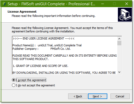 FMSoft_uniGUI_{Edition_0.XX.0.YYYY}.exe Esta é a que será instalada no PC do desenvolvedor para fins de desenvolvimento.