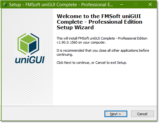 Por favor, faça o download do último uniGUI Setup no portal do cliente.