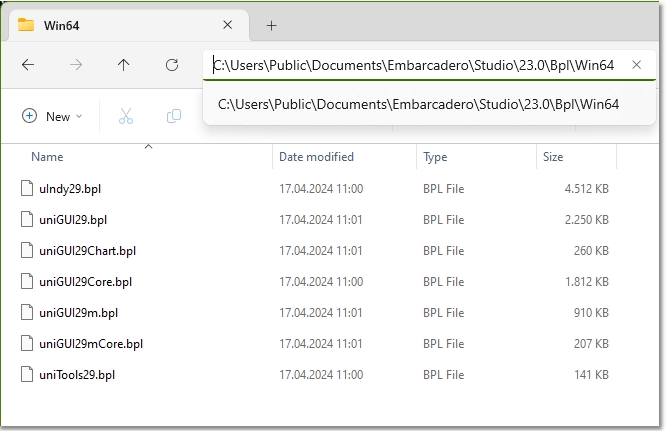 Generated BPL files can be found in the default RAD Studio library path. In the image below these are 64-bit BPL files for Delphi 12.0.