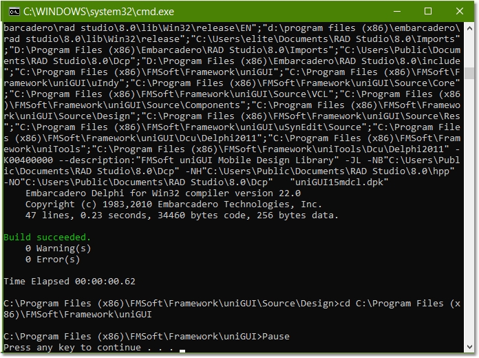 Build uniGUI packages with the provided batch file