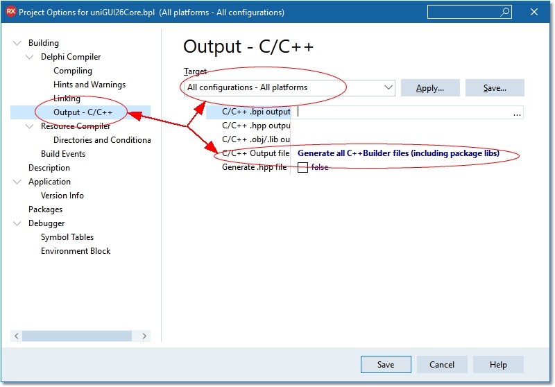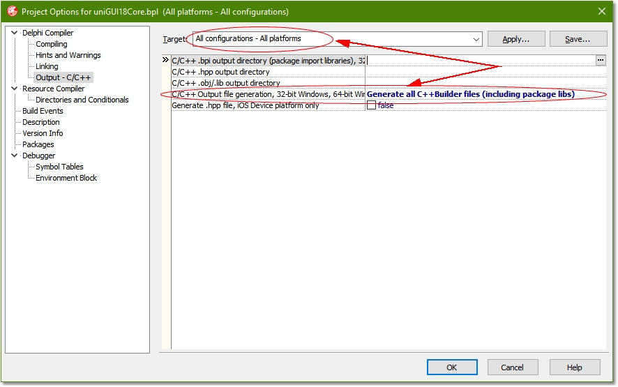 Note: Starting with uniGUI version 1.90.0.1537 all packages are modified to generate all C++ related files by default. If you are installing version 1.90.0.1537 or later you can skip the Generate all C++Builder Files step.