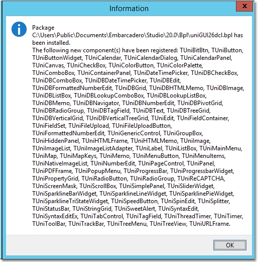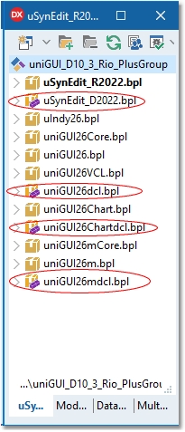 SynEdit_D20xx.bpluniGUIxxdcl.bpluniGUIxxChartdcl.bpl(Starting from build 1597 this package is no longer available)uniGUIxxmdcl.bpl(Plus/Complete Editions only)