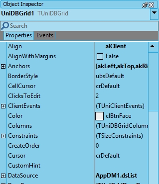 The datamodule is explicitly released when destroying the form (that is, as soon as the form does not need it anymore). But there is no code linking the UniDBGrid to the datamodule. The DFM file shows the design-time link: